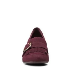 An elegant court profile sees the addition of fringe and buckle loafer detailing, the latest addition to our Unstructured collection. The burgundy suede upper features full leather linings and lightweight underfoot cushioning to maximise comfort, while the 5.5cm sculpted block heel adds wearable elevation and the rubber sole gives enhanced grip.