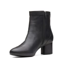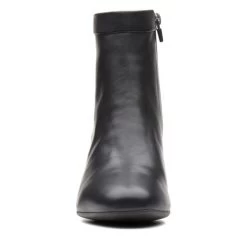 Un Cosmo Up, women’s ankle boots, black leather – A wardrobe staple, these black leather ankle boots are a versatile option for dress casual occasions. The minimal style upper is teamed with a leather wrapped 5.5cm block heel with a stack effect for a premium finish. Full leather linings and a padded topline ensure maximum comfort for feet as they walk.