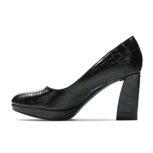 This seasons statement court, Vista Court has a premium sculpted pump profile. The black croc platform is a dress and everyday wardrobe staple with elegant lines and high heel feel that makes it ultra-versatile and wearable.